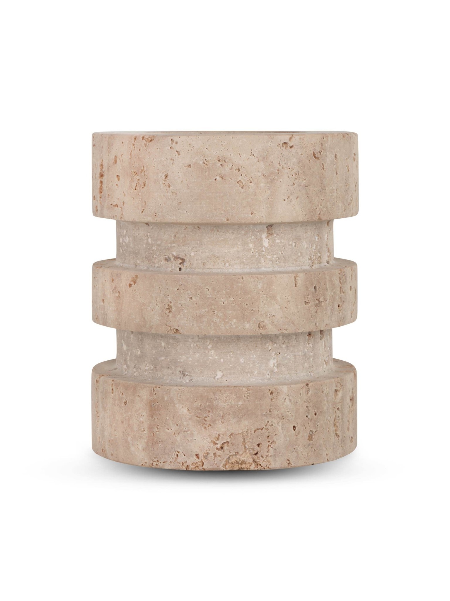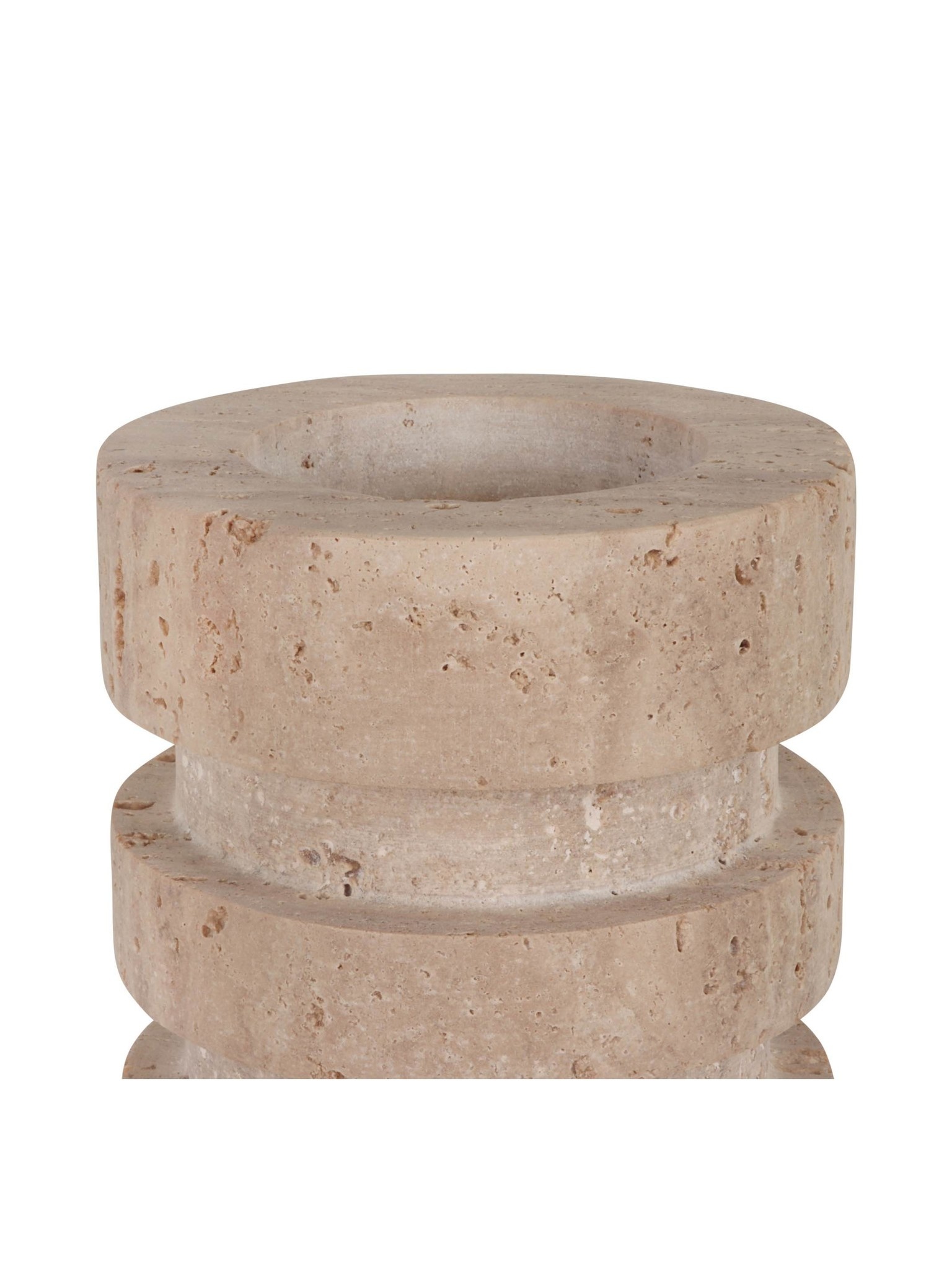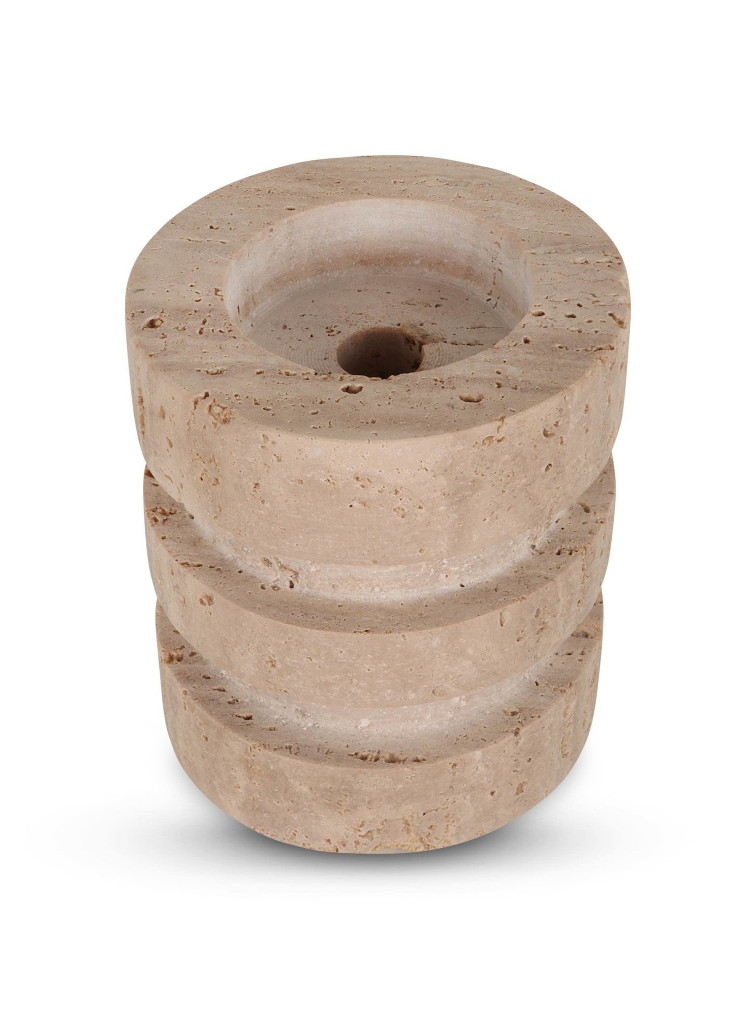 The candlestick is made of travertine and derives the luxurious look from the traditional method of production. Each copy is hand-crafted, so small imperfections are part of the product.