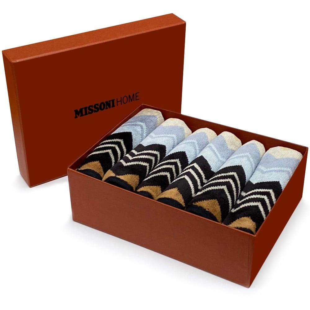 Guest towel set Giacomo from the Italian top brand Missoni Home has beautiful color nuances in the well-known zigzag pattern. The set of 6 pieces is packaged in a luxurious gift box.