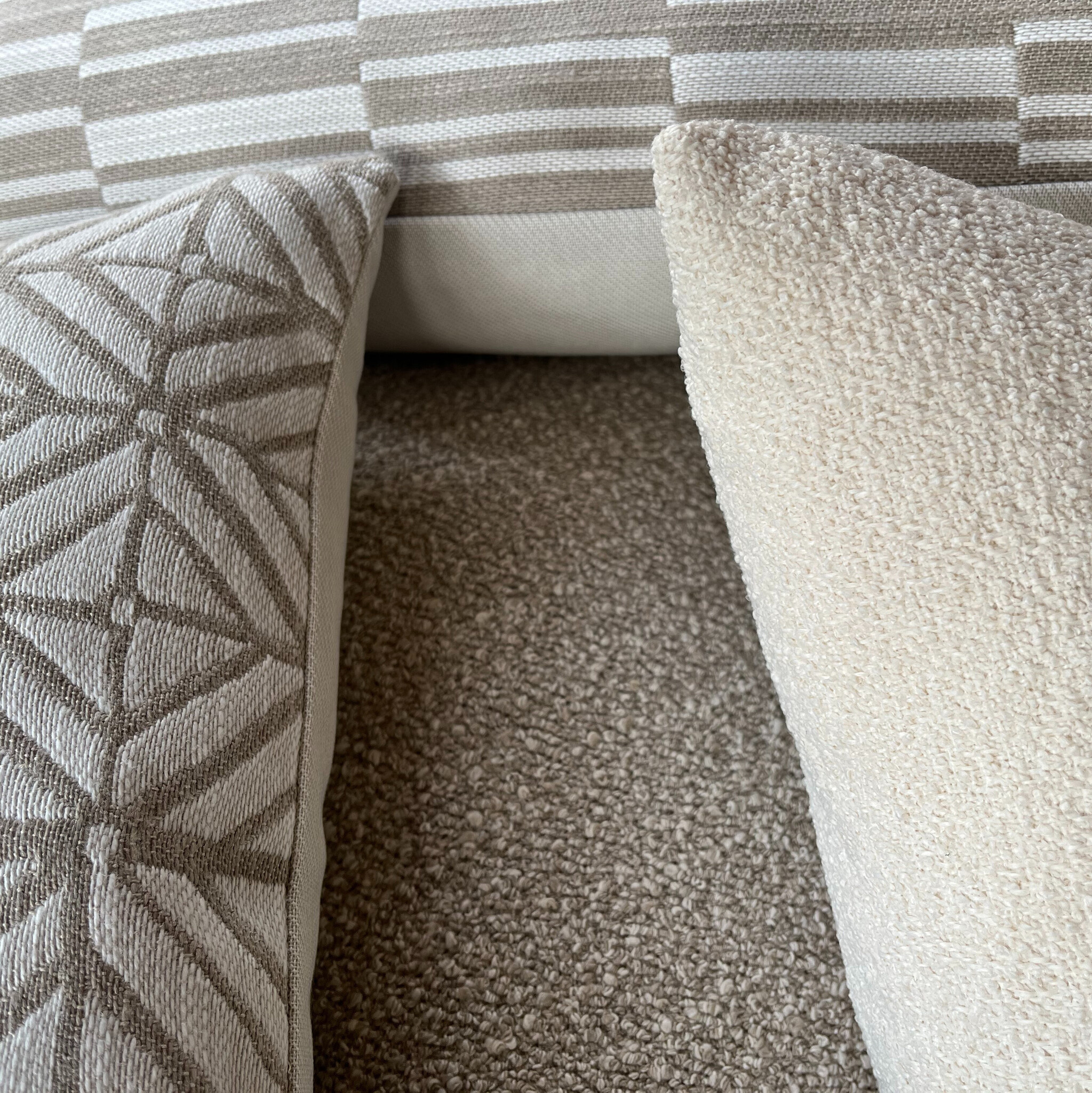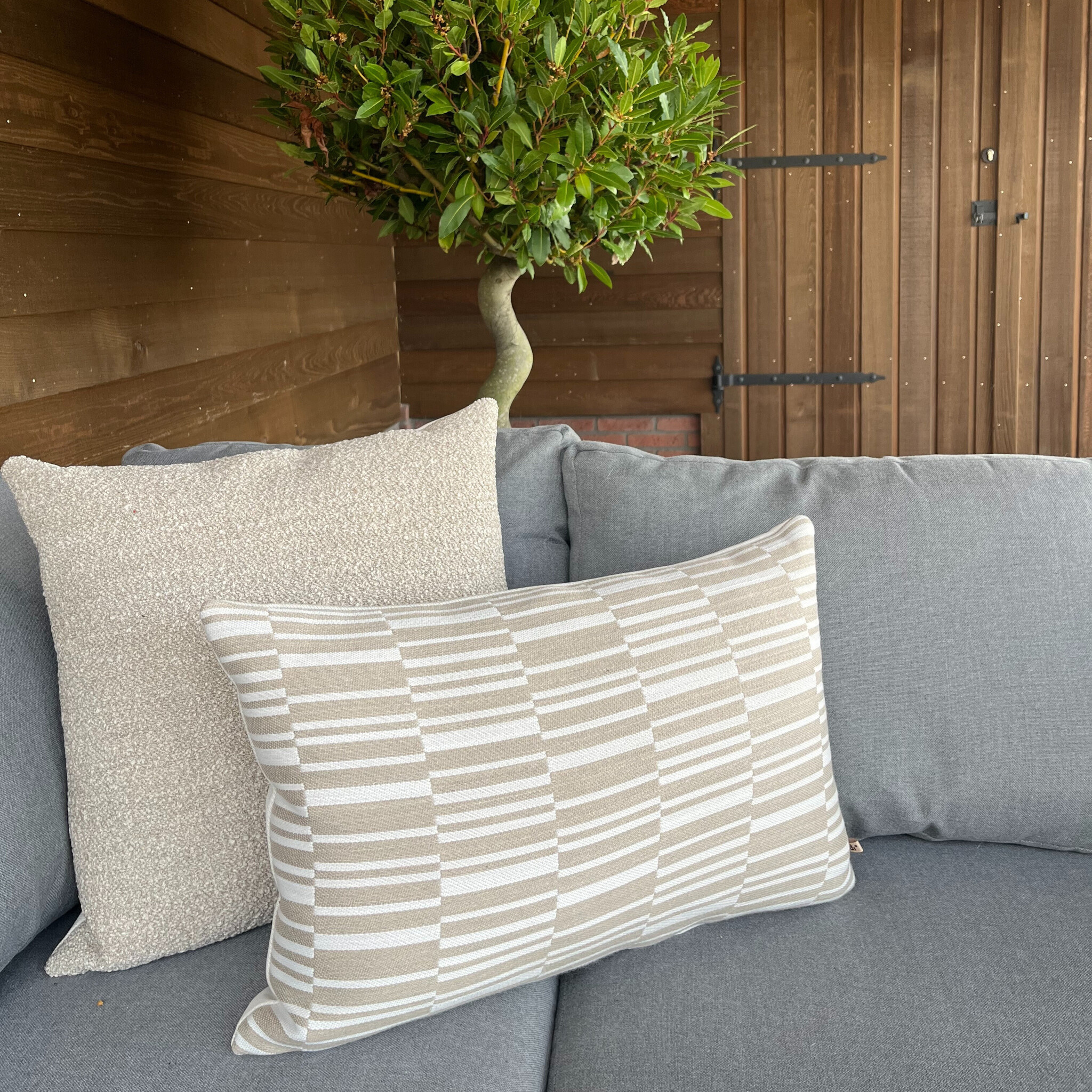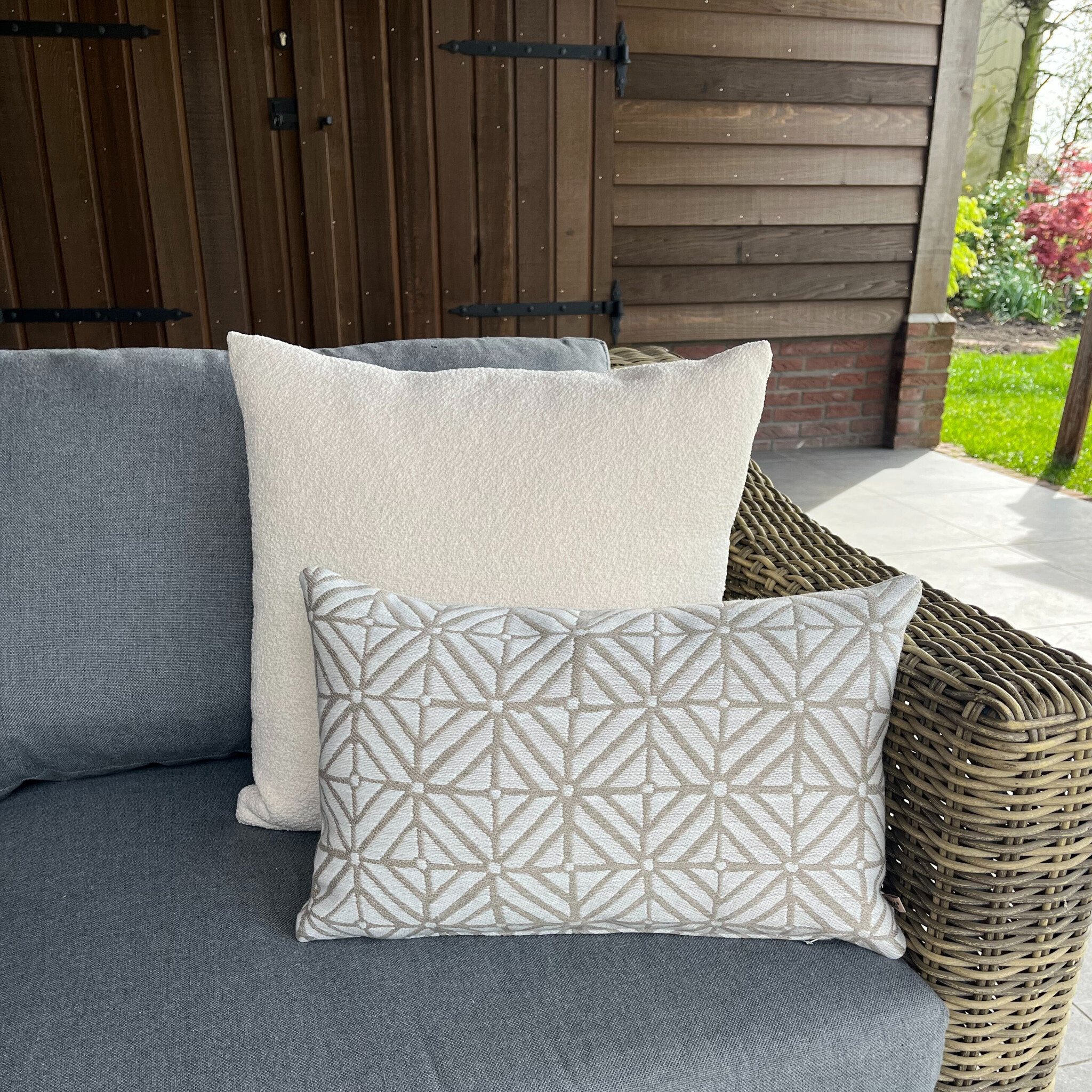 Beautiful outdoor pillow combination in the color Sand from the Dutch brand CLAUDI. The pillow set has a special set price.