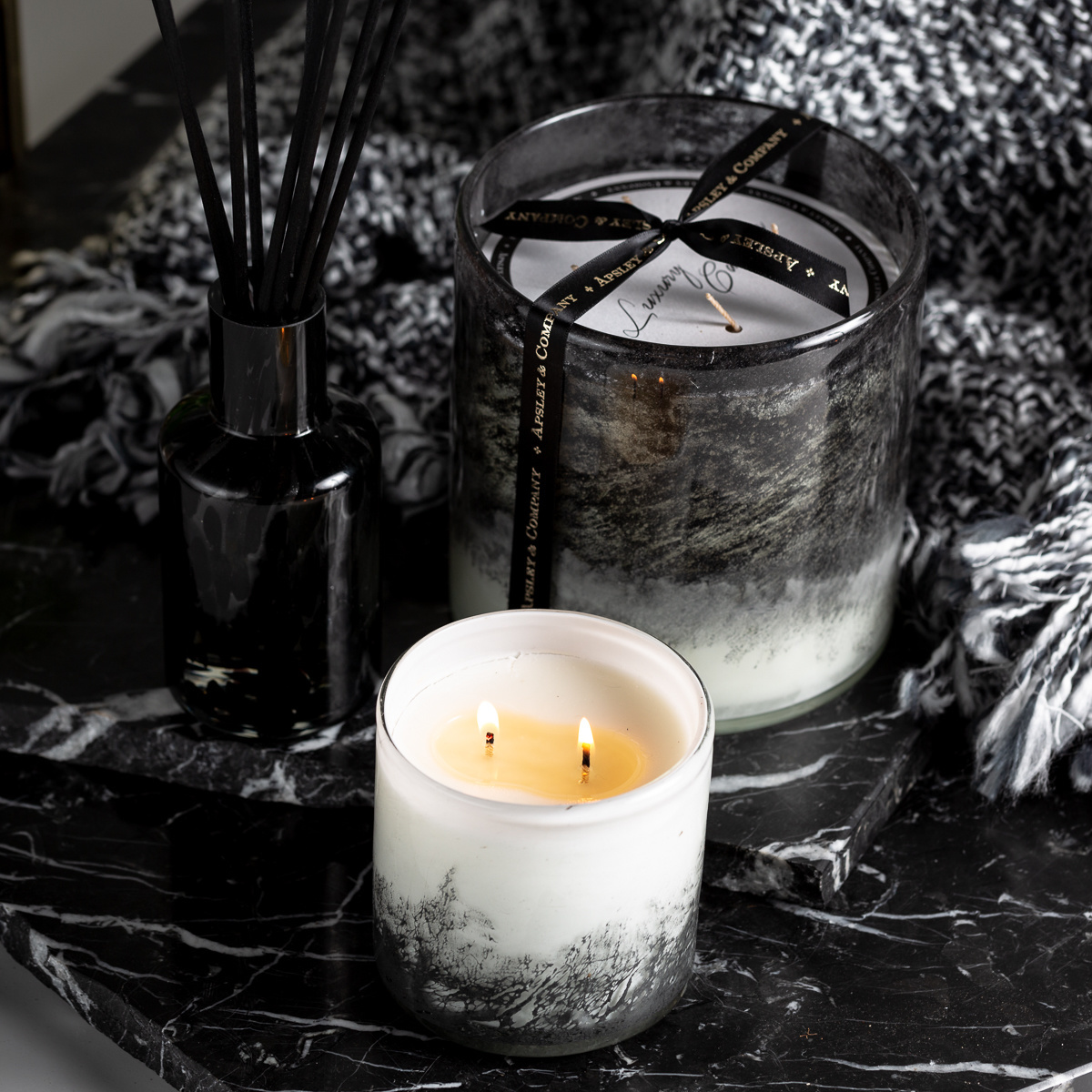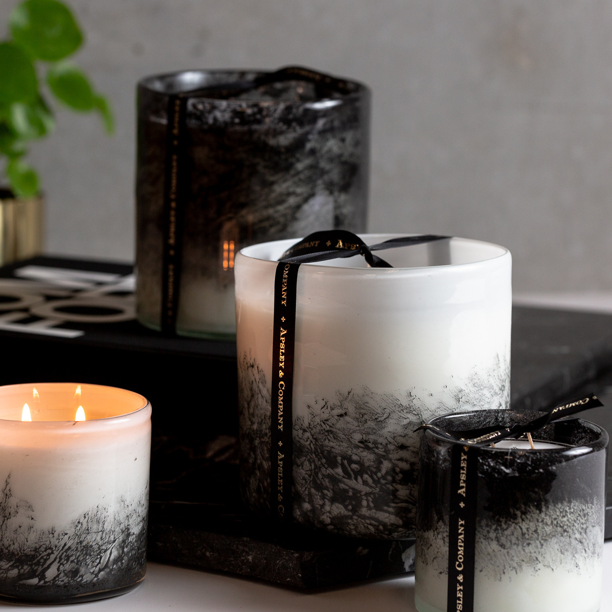 By hand pouring each candle, Apsley & Company's formula ensures that a generous amount of fragrance and fragrance diffusion is created throughout the entire burn time of the 'Eclipse' candle. It also contributes to a longer burn time. Cast in a completely unique, mouth-blown black and white glass that has been washed, polished and dried one by one. Scented candle Eclipse is characterized by scent notes of Sicilian orange, black currant, patchouli and citrus.