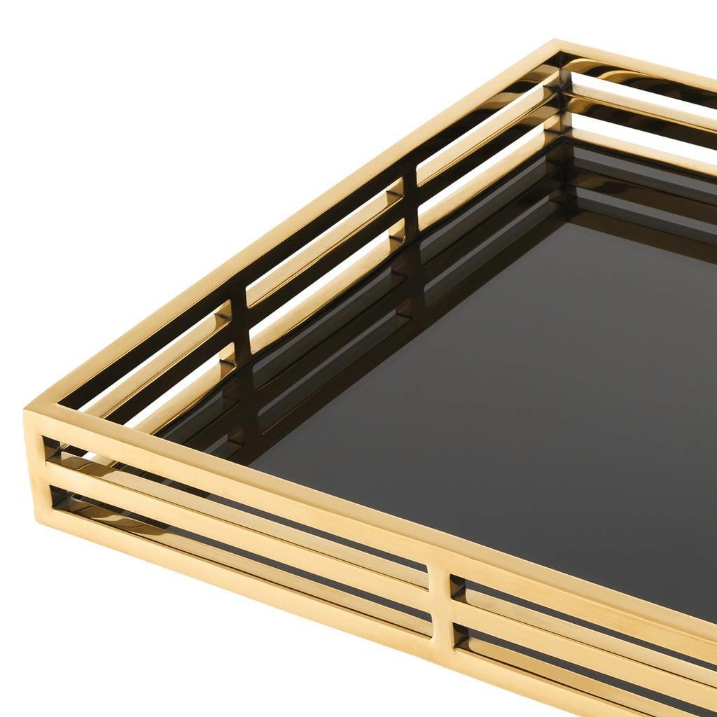 Add some chic style to your tables with he Art Deco style Giacomo Tray. This stylish tray can be used along with pillar candles, tealights and succulents to make attractive table arrangements. Featuring a black glass bottom shelf and open-sided gold finish surround, this rectangular display tray is the perfect accessory for a dressing table. As a vanity tray, it makes a superb perfume organiser.