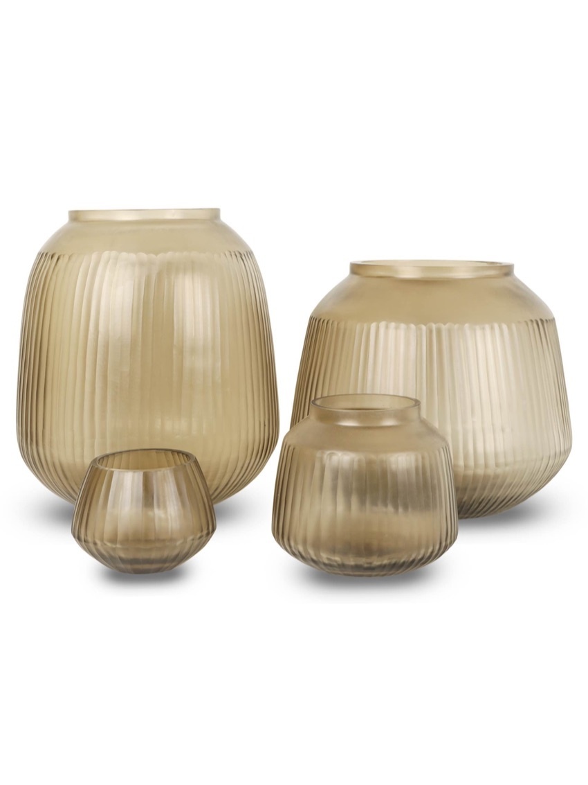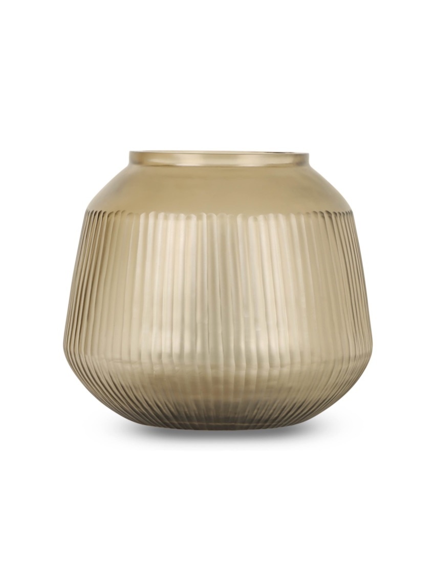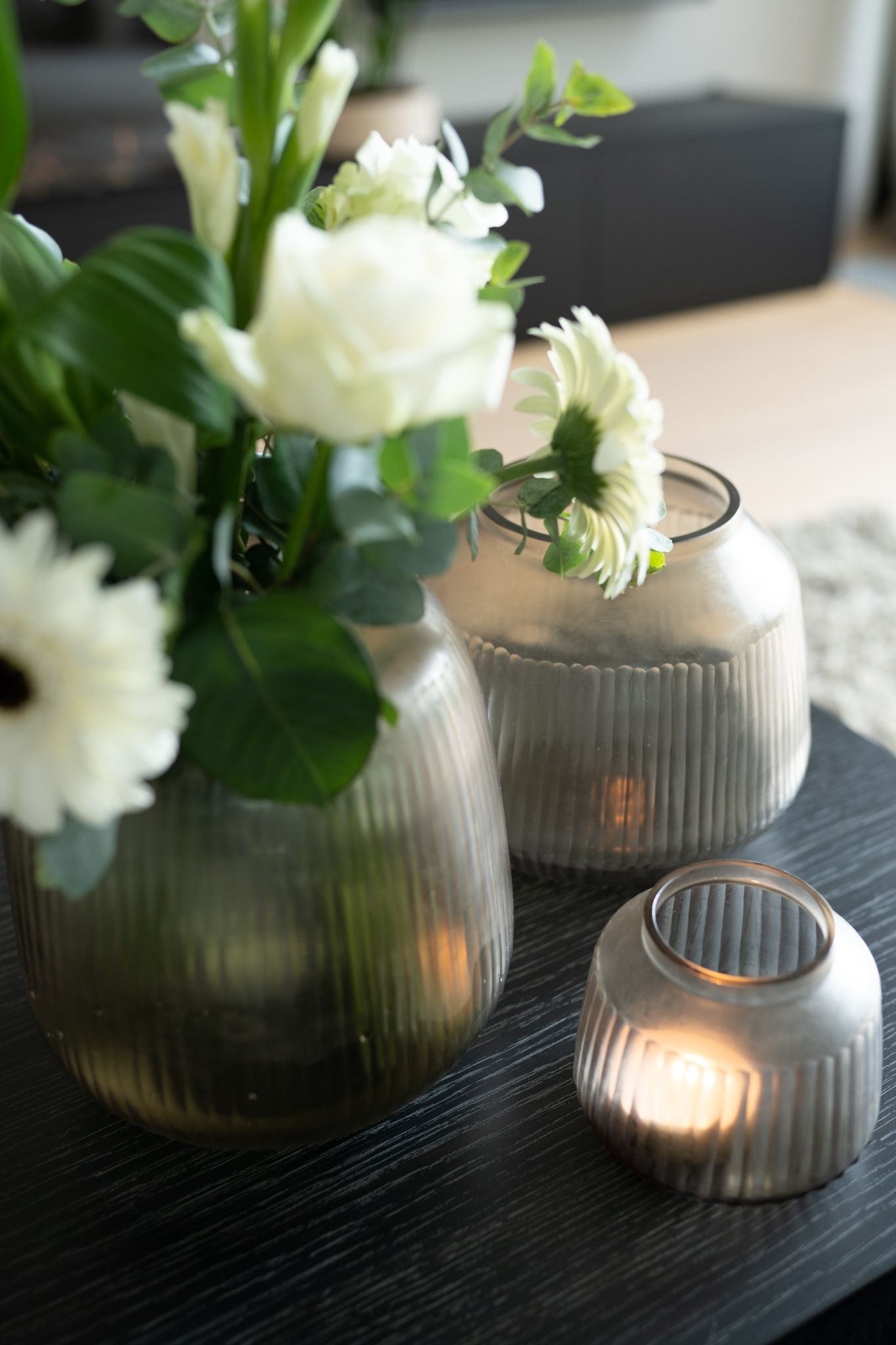 The vase has a modern 'smoke' color and derives the luxurious look from the traditional method of production. Each piece is mouth- blown and hand-finished, so small imperfections are part of the product. Vase Kashmir is available in 2 different sizesand a matching tea light , complete your styling in one go by combining different sizes.