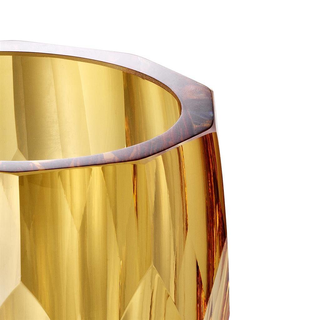 Ideal for all-season arrangements, the amber Marquis Vase offers you a world of decorative options. Its hand-cut glass design with charmingly irregular facets sports a subtle organic style.