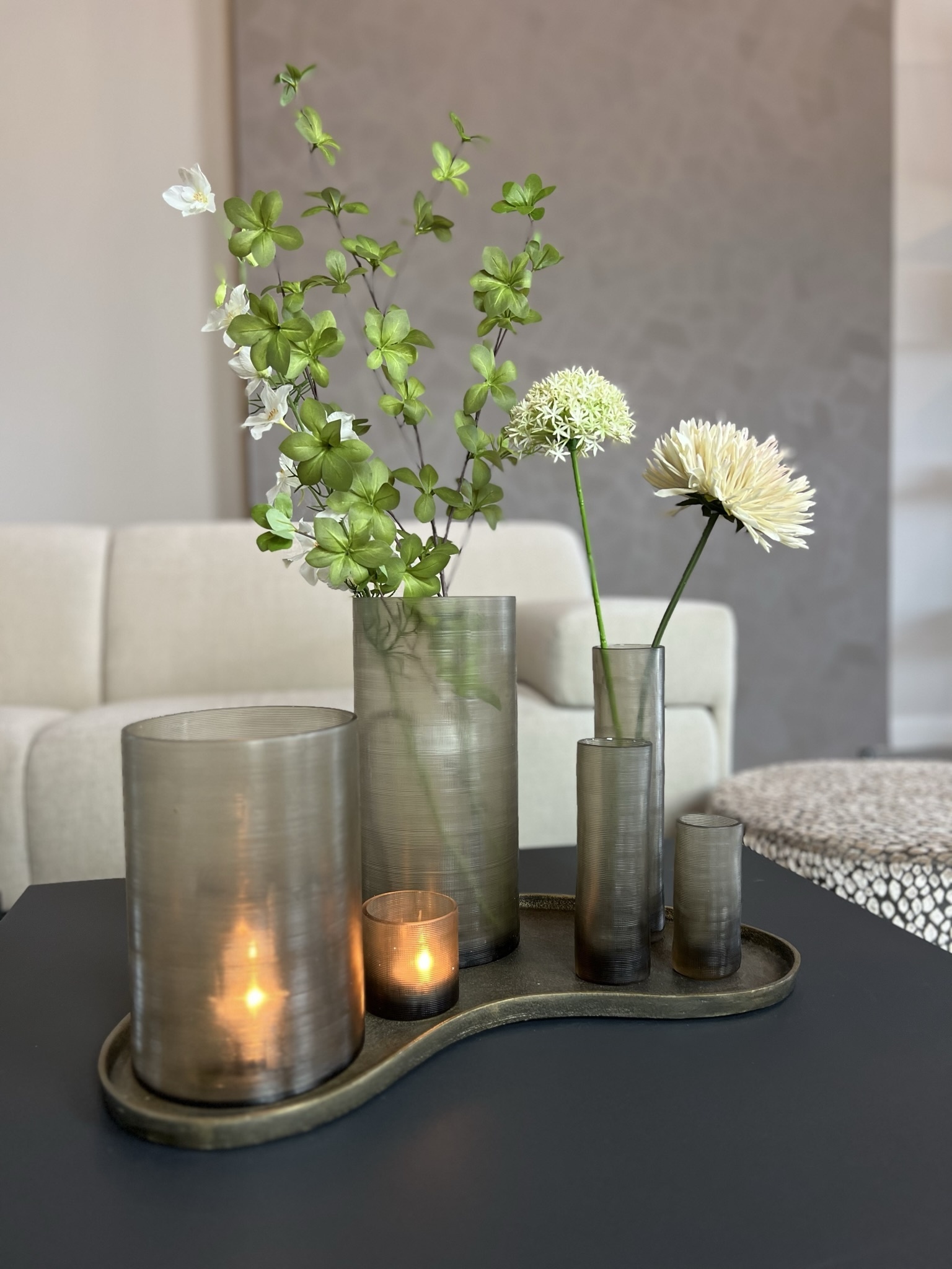 The vase has a modern smoke color and derives the luxurious look from the traditional method of production. Each piece is mouth-blown and hand-finished, so small imperfections are part of the product. Vase Medina is available in 5 different sizesand a matching tea light, complete your styling in one go by combining different sizes.